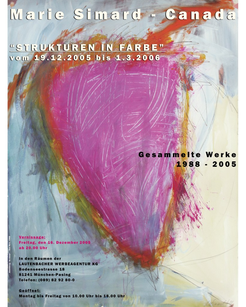 Solo-Ausstellung mit dem Titel « Strukturen in Farbe » Marie Simard – Canada, Gesammelte Werke 1988 bis 2005, Werbeagentur Lautenbacher, München-Pasing (Deutschland)